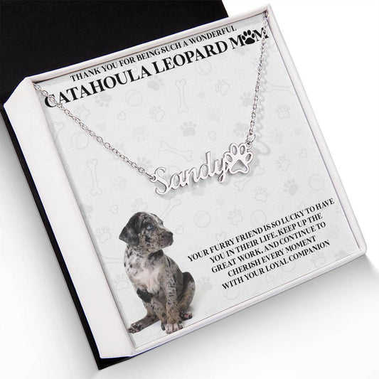 Personalized Catahoula Leopard Mom Paw Print Name Necklace - Customized Jewelry Gift for Women Catahoula Leopard Dog Lover