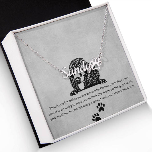Personalized Poodle Mom Paw Print Name Necklace - Customized Jewelry Gift for Women Poodle Dog Lover