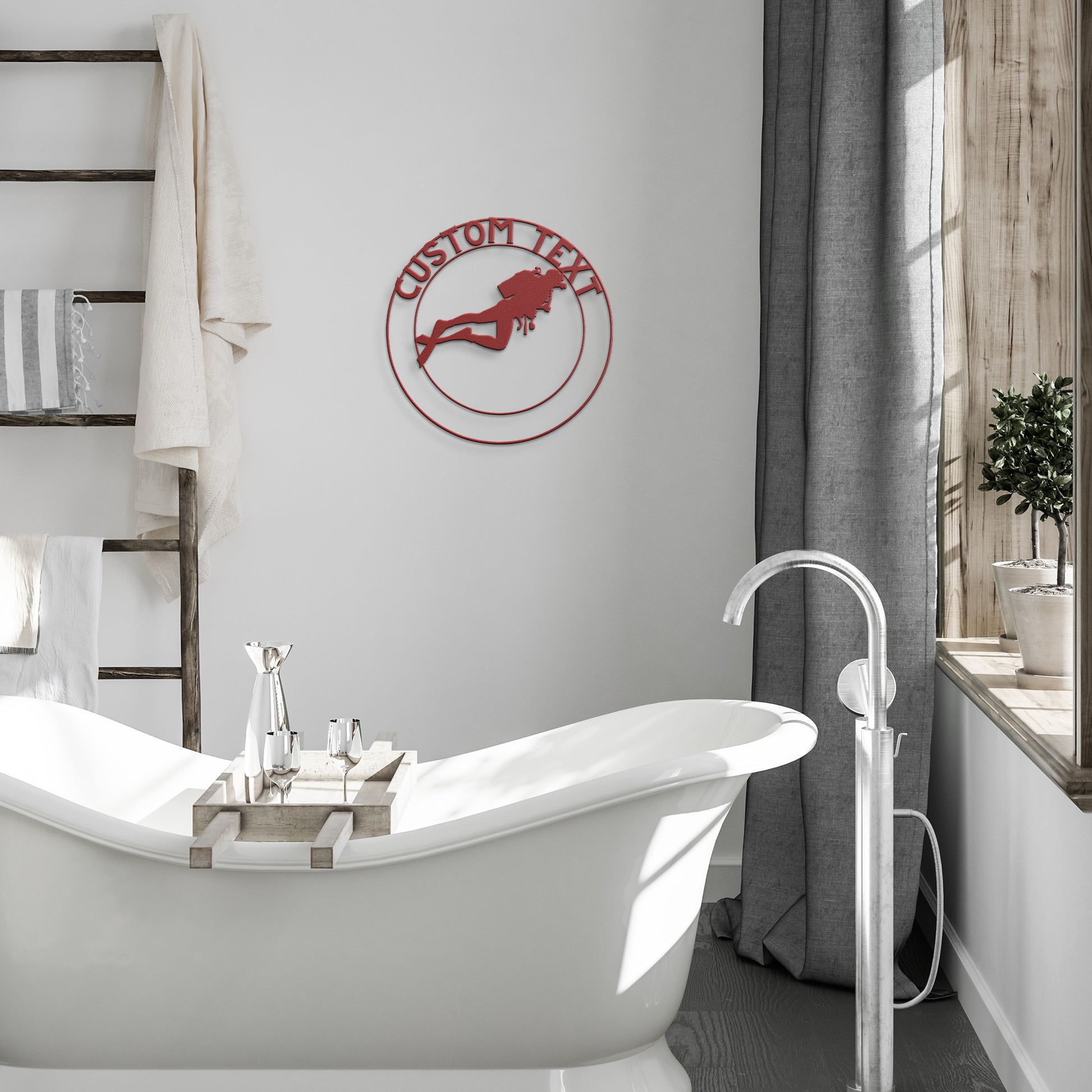 Elevate your home decor with a beautiful Scuba Driver metal sign. Made with 18 gauge steel and powder coated in your choice of 5 colors, this sign is built to withstand the elements for years of enjoyment. Add a touch of elegance to your home on the inside, outside, or both!